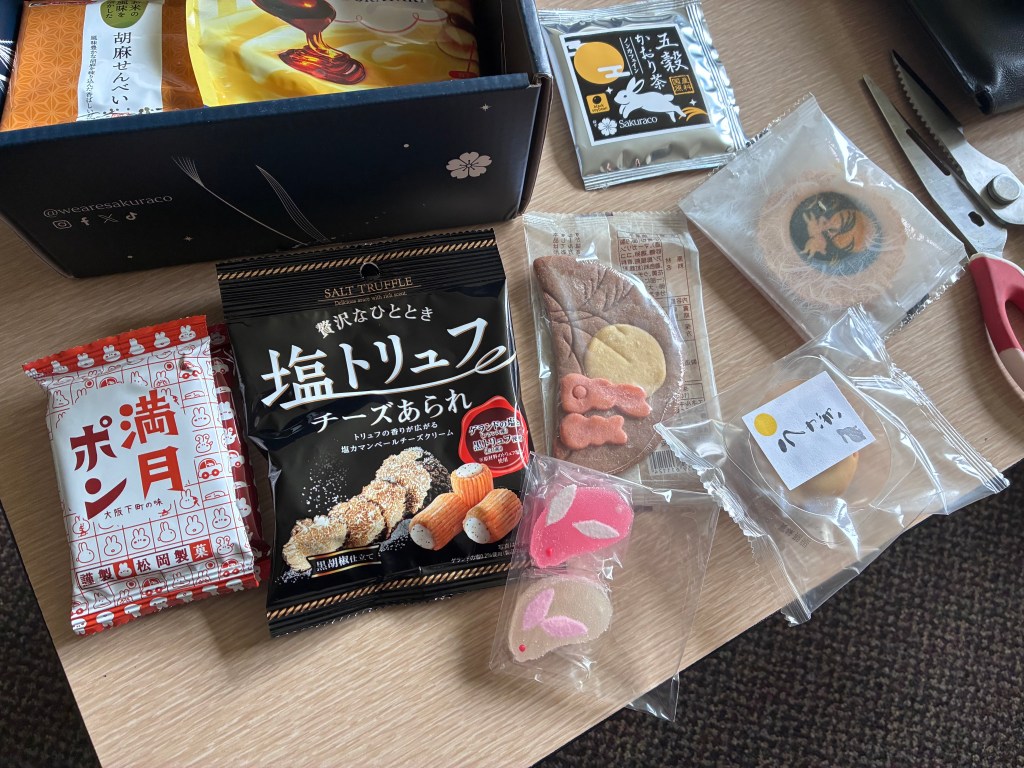 The Sakuraco snacks were really good. Unlike the other two boxes, there were no snacks we thought were super disgusting. In Japan, fall is known as tsukimi, and the symbol of autumn is usagi, or a rabbit, which I find curious because in Western culture a rabbit is a symbol of the spring. It seems to be because the moon is upside down in Japan, and the shape of the craters looks like a rabbit to them.