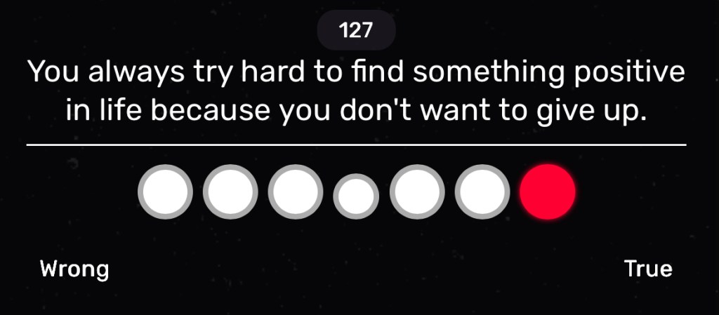 Anywho, I don’t remember what Enneagram I got, so I took the test while me and Jeremy were watching Walter do something stupid. Turns out I don’t remember which result I got because I didn’t get one. Which is a genuine result you can get; if none of your categories are more than 50%, the test will still give you the result of the one that was the highest but tells you basically you don’t have one. The central concept of Enneagrams is the idea of tracking down what neuroses you developed from childhood trauma and how it drives you, but despite all my complaining about my childhood none of it affects me in that way. Per the example above, my mother never succeed in convincing me I would never be a great author, but by the same token it’s not like I want to succeed because I want to prove her wrong or something. I have always wanted to be a great author, I will always want to be a great author, the Earth continues to spin.