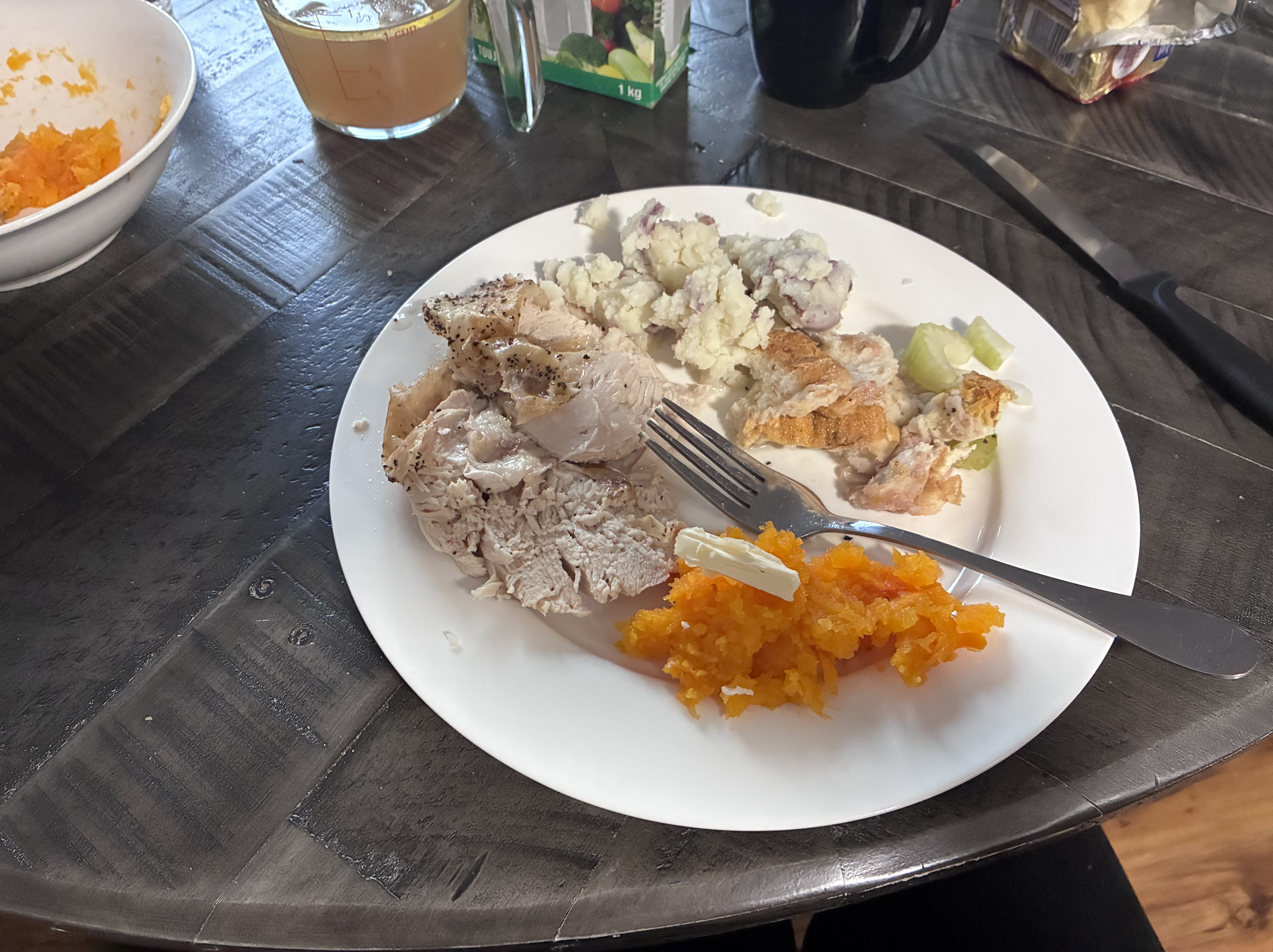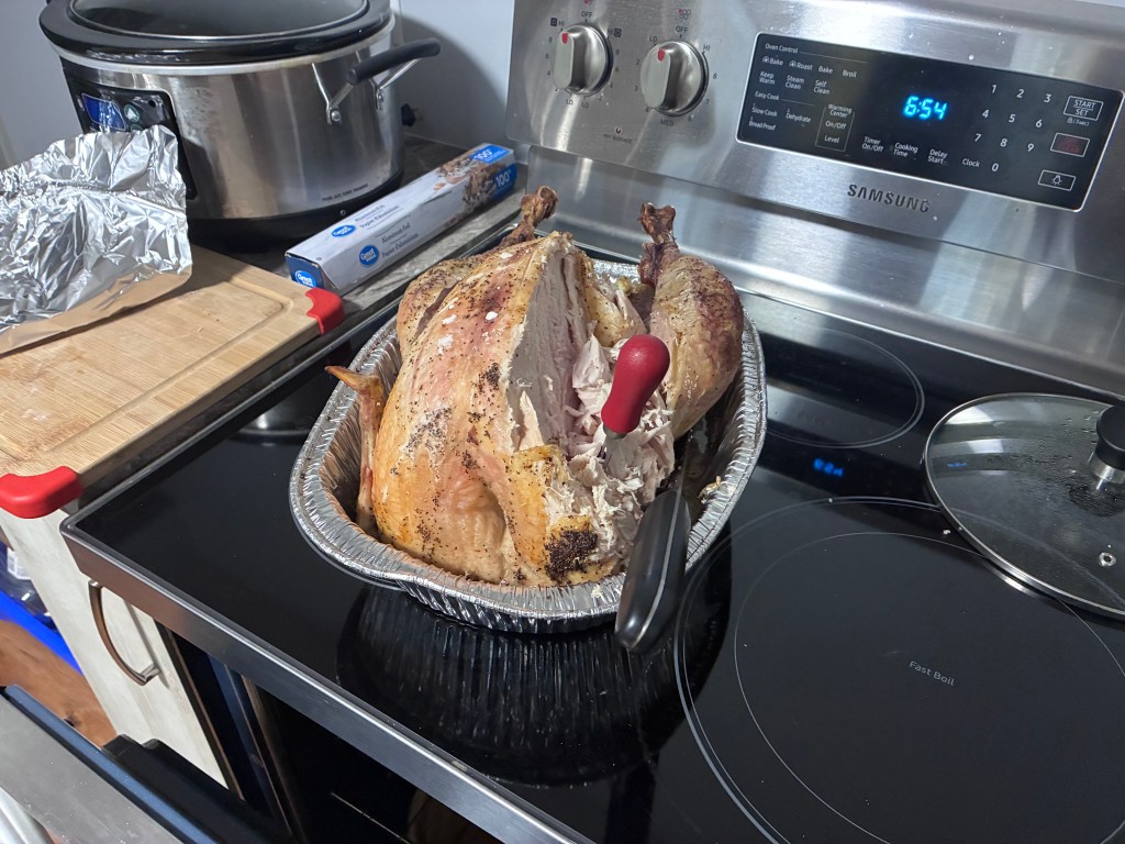 I’m tired and don’t do much before bed. I should be stripping the meat off the turkey and doing something with it, but my brain hurts.