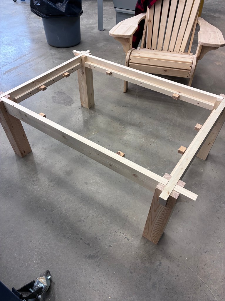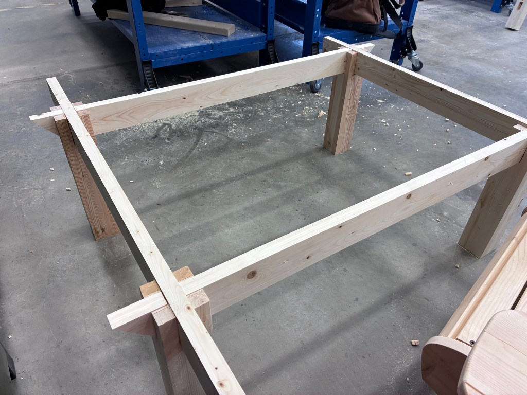 I felt good to start in the shop. I finished notching out my replacement B rails and felt a lot better about having redone them. Cut them to size and put the rails together with the legs.