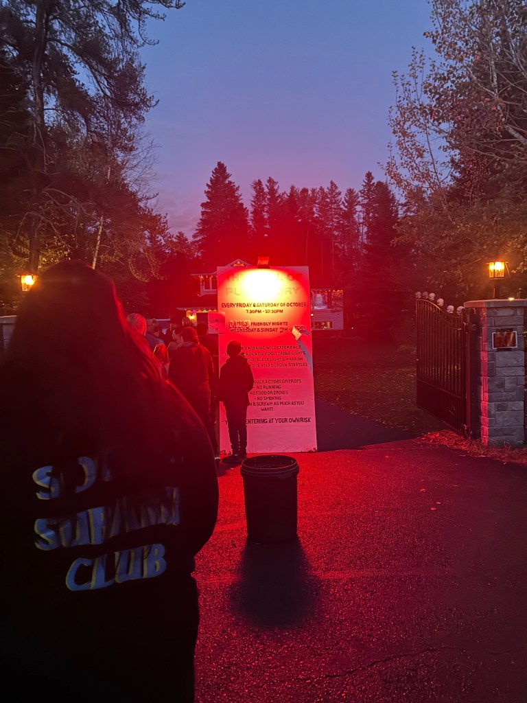 It was pretty good, I wouldn’t have minded donating some cash towards them if I wasn’t scarily broke. As usual, I giggled when the actors ran at us screaming and waving fake weapons, while Jeremy cowered behind me. Until some kids went running through it until they caught up to us, and then it was just listening to them scream and ruin the moment.