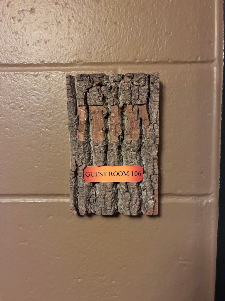 The room is fine. I’ve seen worse, I’ve seen better. The fridge is a proper half-fridge and not one of the mini-fridges you can’t fit anything into, which is good. Two queen sized beds. One desk, and one comfy chair with a small table. I turn the heater on and it comes on immediately to 90, blowing air up the curtains and not into the room itself.