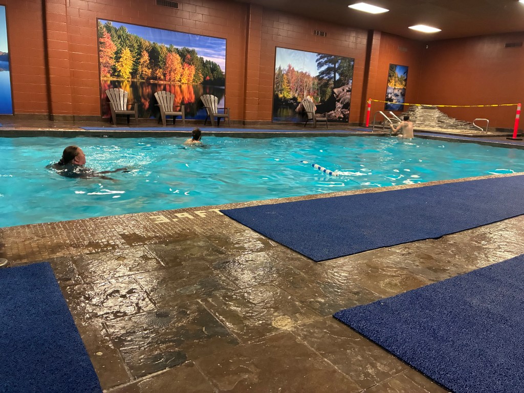 We both shower and go hop in the pool. It’s heated, which is nice. The Jacuzzi is broken, which isn’t. I swim a few laps, but I’m wary of wearing myself out before work the next day. Victoria has no such concerns.