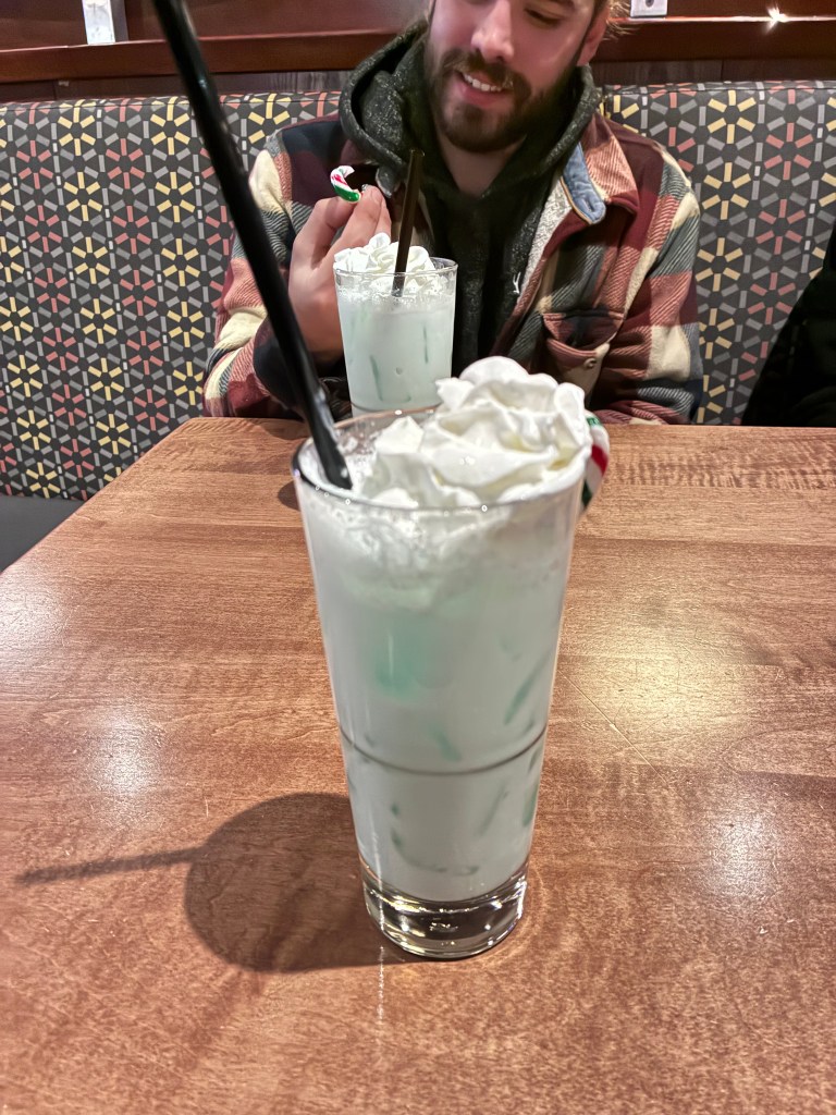 I order some pepperminty cocktail thing, Drew orders the same, Kyle and Bart order not one but two cocktails each, with Redbull in them. On the walk to and from Boston Pizza, Bart is sucking on a pot vape like a soother. Maybe he’s like Leif, so full of repressed rage that he can only function stoned.