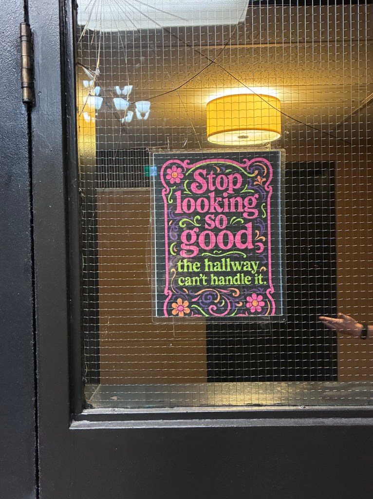 I drink my little protein shake. No competition, Soylent is 1000 times better, and cheaper too, but them’s the breaks. Victoria mentions hitting the free breakfast for a muffin and that’s not a bad idea. I wander down ahead of her in my union sweater.