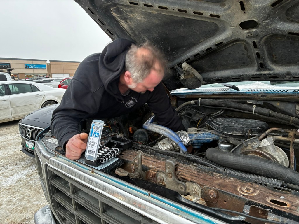 After that, it’s on to Princess Auto to try and fix the exhaust leak. It’s a new carb and he clearly hasn’t hooked it up properly because it’s leaking gas on the rad.