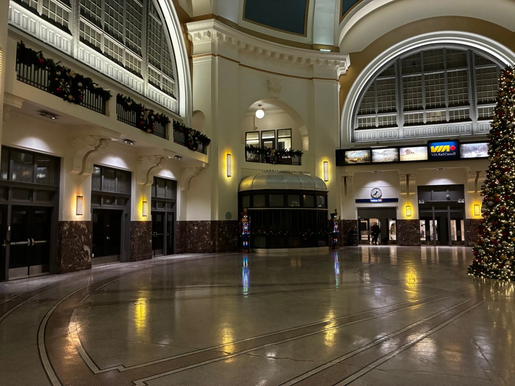 Actually, 3 nights in Winnipeg. The train doesn’t leave ’til 9:30pm, assuming it is on time and it never is, which means I need somewhere warm to hangout until I can head to the station. It’s annoying to spend all this extra money, but what would be more annoying would be trying to scrimp and missing the train entirely.