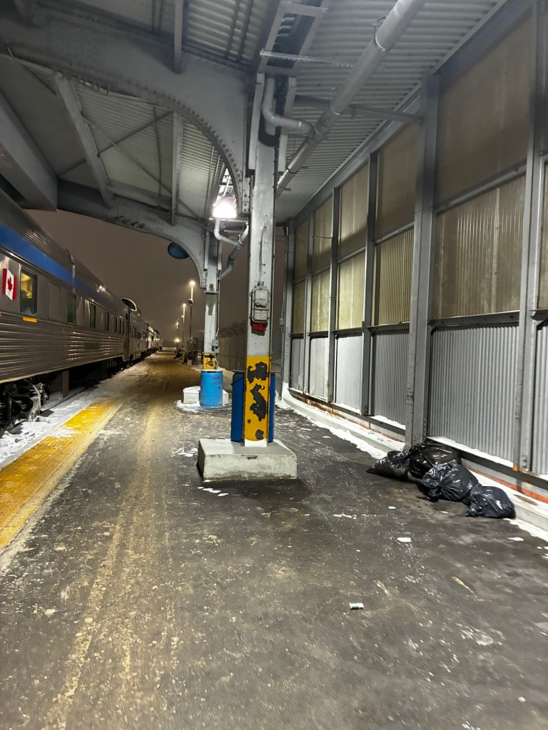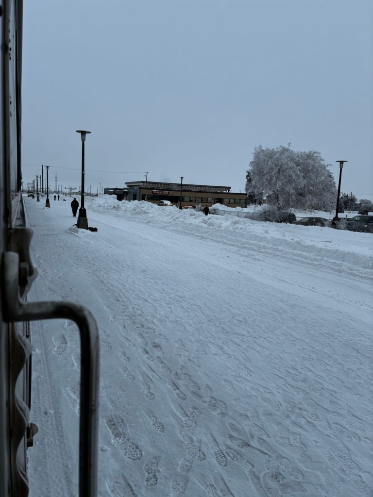 Went back to my bunk to change into layers. Like Winnipeg, the platform is closed between 8 and 9, so we can’t get back on the train during that time.