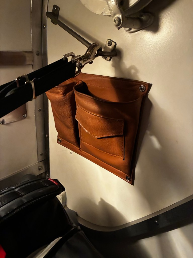 Some people might complain about the top bunk – I’ve seen a few reviews complain that it doesn’t have a window – but I prefer it. When I was a kid, and until I moved out of my parents house, I actually had a loft bed. I prefer small, enclosed spaces. The bunk was actually surprisingly roomy, and could probably fit two people, about double bed sized, so having my bags with me was no issue. There was a small bag with 2 towels and some toiletries – making sure we shower – a net hammock, the length of the bed, for stashing things; 2 pillows; and a nice, thick comforter. Attached to the wall was a small mirror, and a little leather case for holding small objects (toothbrush, maybe?).