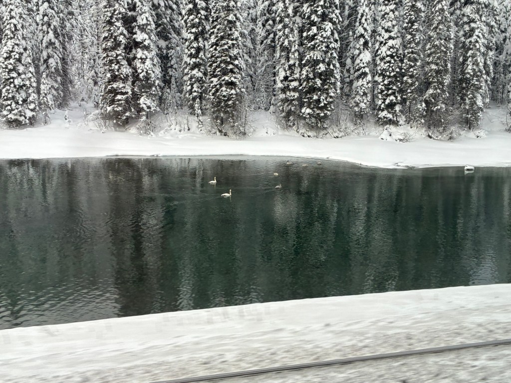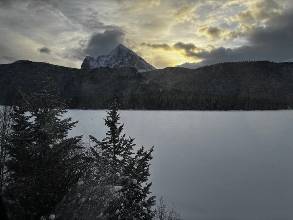 As we passed Yellowhead Lake, I spotted a wolf watching the train go by. It’s wolf mating season, that’s why the full moon in January is called the Wolf Moon. Our Wolf Moon was the day I left Fort Frances, actually.