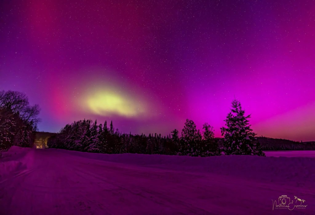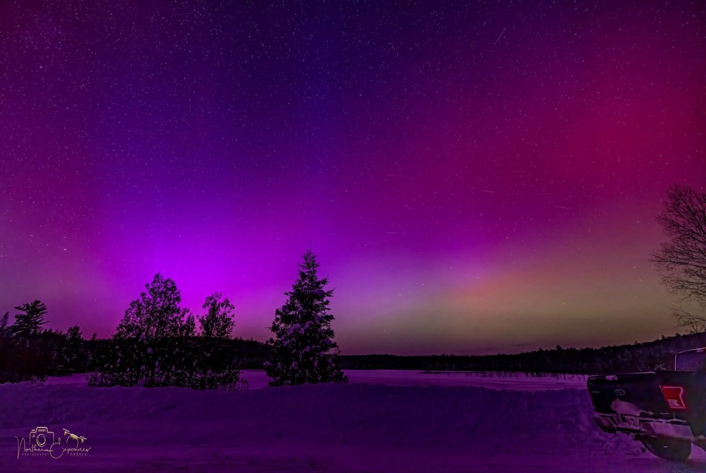 There was supposed to be northern lights on Monday, so I took Bailey for a walk in the evening. I saw something I couldn’t decide if it was lights or clouds, so I grabbed someone else’s photos of the Aurora as well. Probably too much light pollution, here in the city.