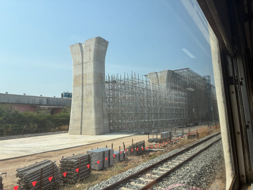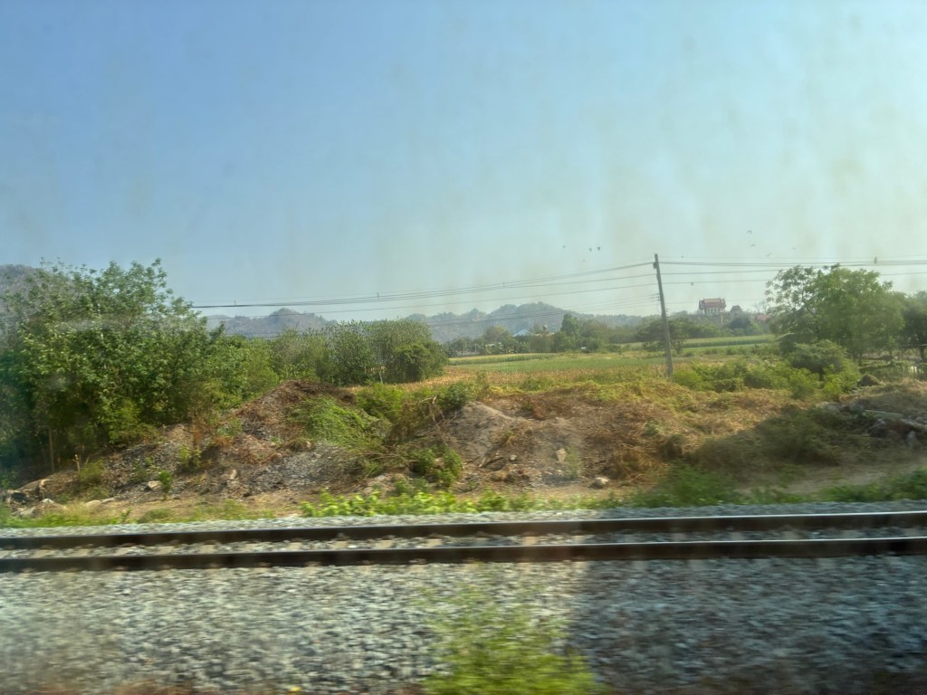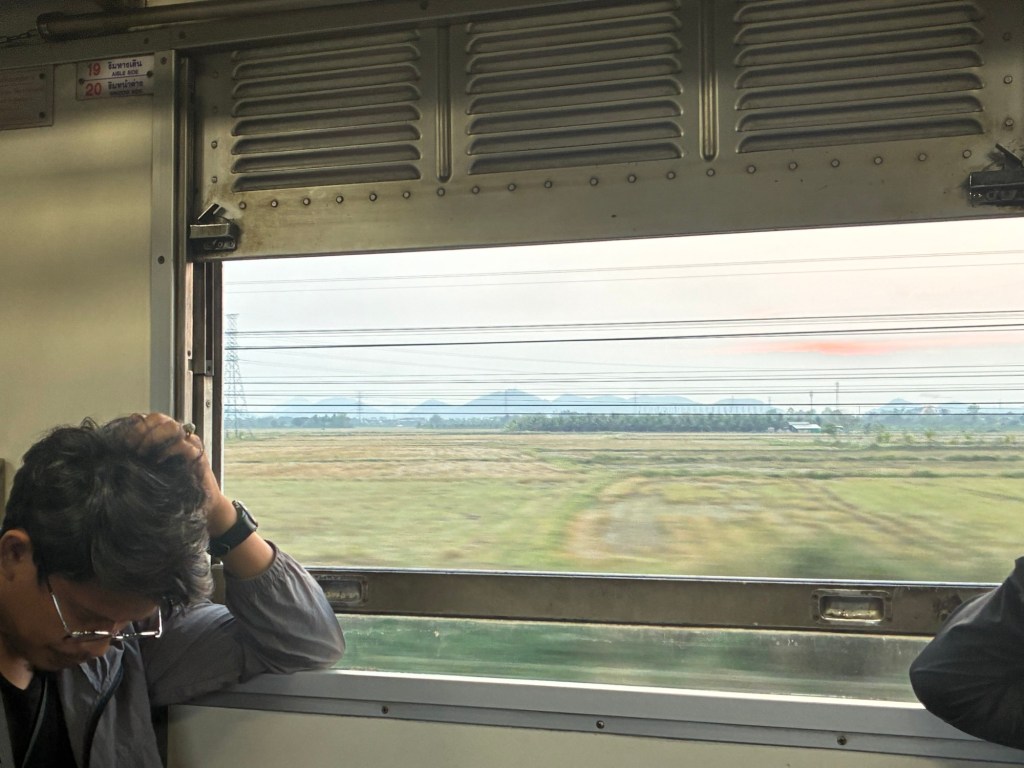I couldn’t take pictures of the scenery because the windows were so dirty. For the firs 6 hours, it was cranes (as in the bird), rice paddies, and concrete pylons. Small ramshackled towns, in the Thai style. The grandmother’s in front of me discussed their grandchildren.