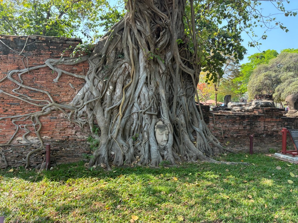 The last Wat I visited for the day was Wat Mahathat, which became the royal Wat after Ratchaburana fell out of favour. This Wat is less interesting to me than Ratchaburana, because the central Prang has collapsed and it’s generally in worse shape, but it’s famous because this is the Wat where there’s the Buddha head in the trees.