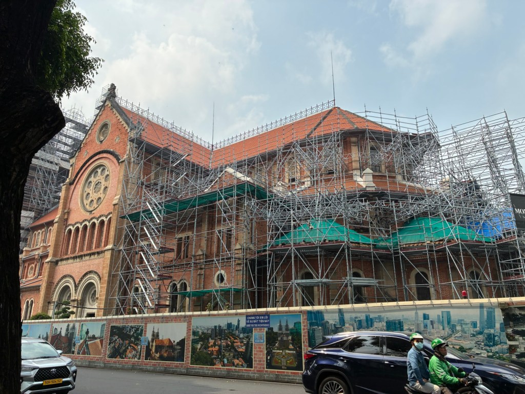 The church was a wash. Called the Notre Dame of Vietnam, it’s buried under a scaffold… although as a scaffolder, I had fun scoping it out nonetheless. I sent the pics to Duff and he had a good laugh about it as well.