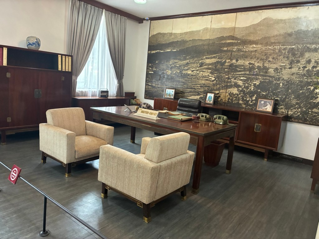 The Independence Palace is interesting. It was the seat of power for South Vietnam, before the war, and the war officially ended when a tank bust down the gate in ’75. They basically just left everything as it was, including the telex machines in the basement, a living memorial to the past. In a way, keeping the palace as it was is kind of an “eff you” to the South; you lost the war and we’re keeping this to remind you of it. They left the tank that knocked down the gate on the grounds. Even dad expressed surprise that the North hadn’t just bulldozed the palace to the ground and pretended it never existed.