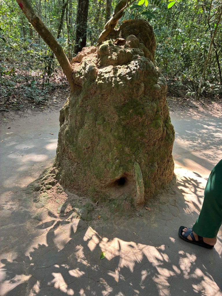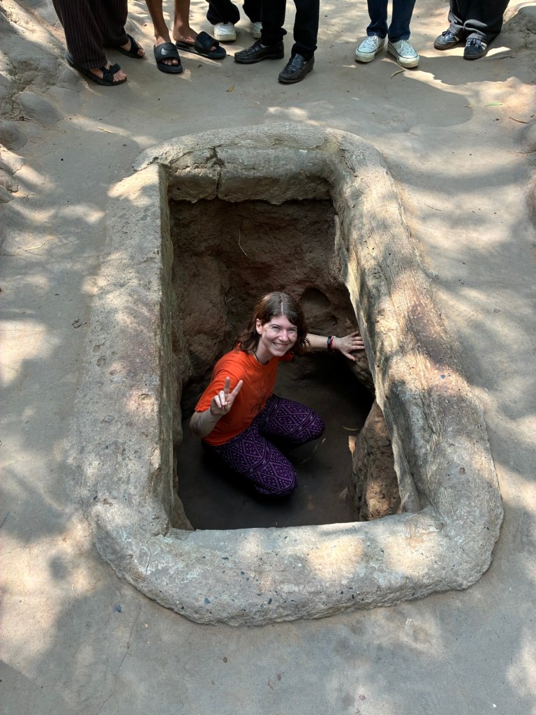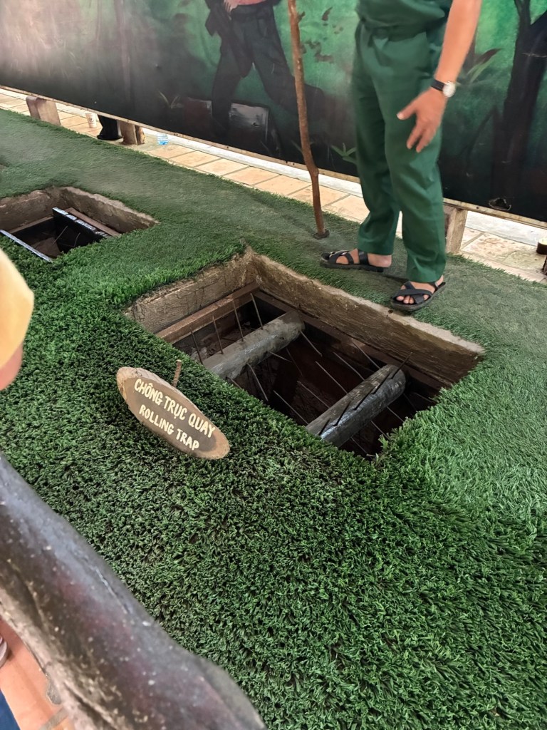 The Cu Chi tunnels are interesting. The Viet Cong dug them for guerilla war against the Americans and they were pretty ingeniously designed. The way they hid the air returns, or the smoke from cooking underground. They also used American clothes and shampoo so the dogs wouldn’t be able to smell them. They wore shoes designed so one faced forward and one faced backwards, to make it hard to follow. And the traps… gruesome.