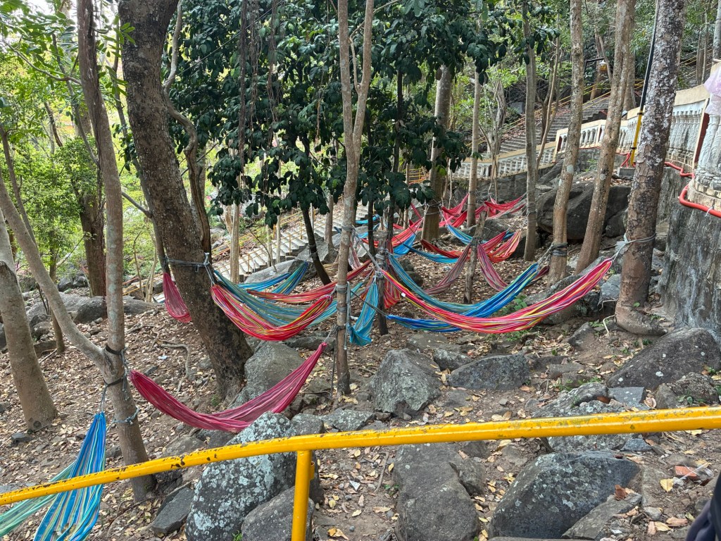 There’s also quite a few hammocks around. It’s still a popular site for pilgrimages; hiking to the top. If I had more time, it would be tempting. It costs 20k to nap in a hammock.