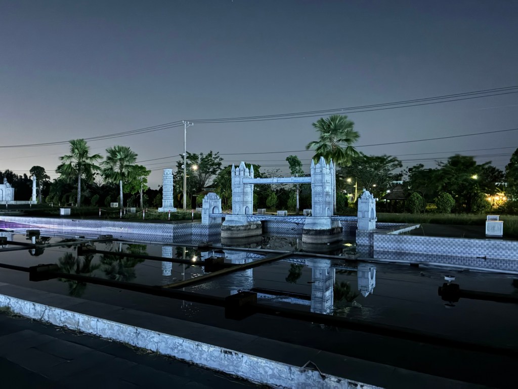 We also made a detour to visit something I’d found on the map. It called itself the 7 Wonders of the World. It’s just a park with little version of famous buildings, free to walk around. It was a great spot to stop and stretch our legs – both of us were getting pretty saddle sore.