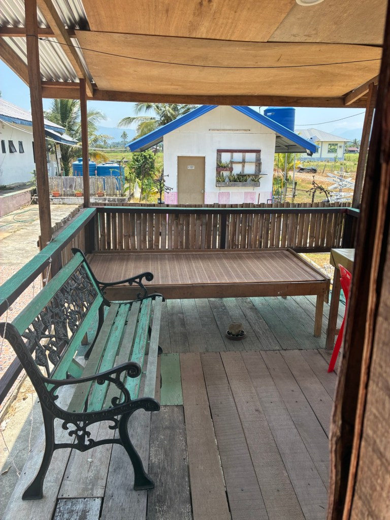 He showed me around. His English is good but not perfect. There’s his house, with a patio, the guesthouse with 4 rooms and the kitchen – only for my use – a small outhouse, and a small bamboo hut that was for volunteers.