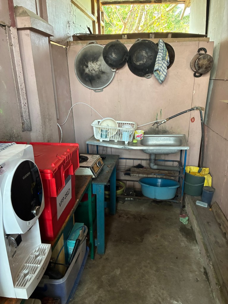 It was beyond rustic. The kitchen was cement, with a grate door, a single tap with no hot water, a fridge, and a single gas element. There was a rice cooker, and a panini press for some reason. A lot of the utensils were broken or cheap plastic and the back was open to the elements.