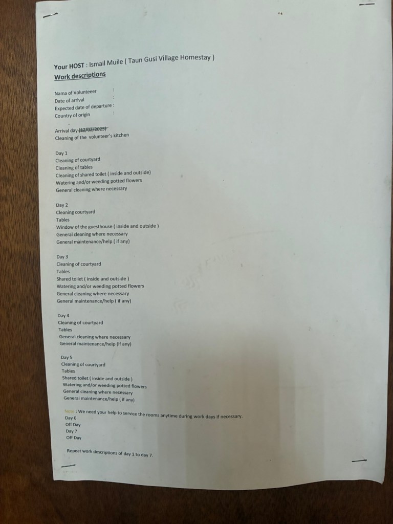 I hauled my luggage up into the hut. There was a list of tasks on the wall, but it was not long. Actually, scanning it, I doubted any of this would actually take me 2 hours.