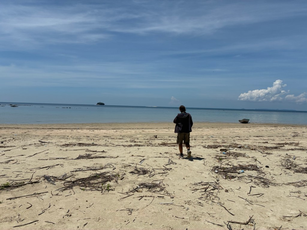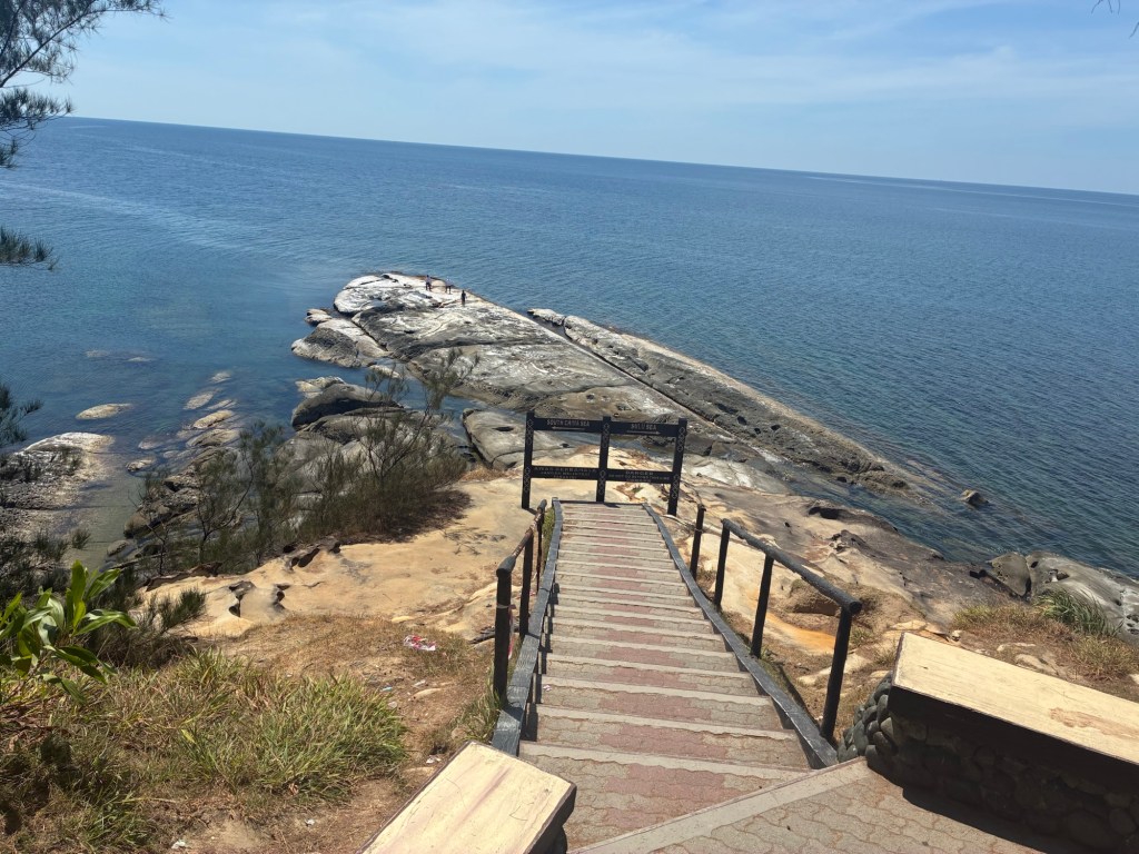 Up and over we walked. There is a parking area here, curiously. There were quite a few Malaysians hanging around, but I assume they are locals who use this as a public beach. We’re the only white people.