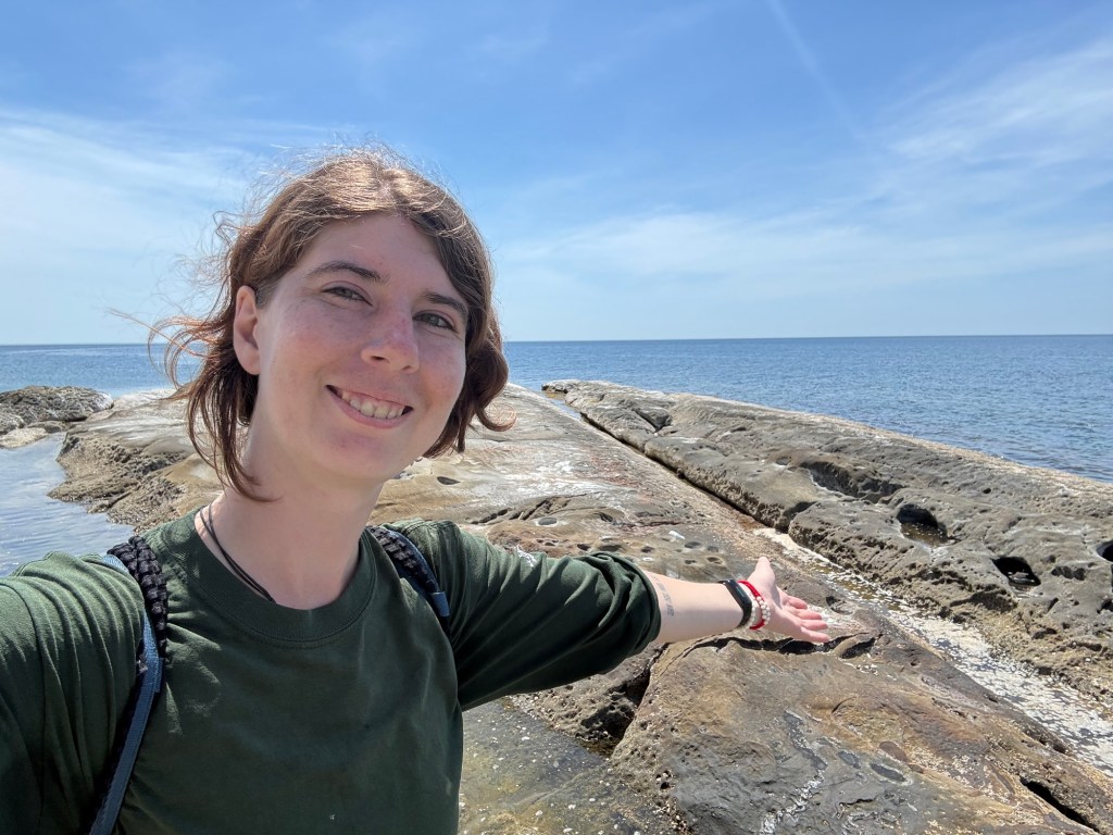 We got here faster than I thought, so I requested stopping at a bathroom and changing into my swimsuit for a swim. Vlad doesn’t swim, but he didn’t mind hanging out on the beach. He wrestled my backpack into the boot of the bike and told me to go ahead.