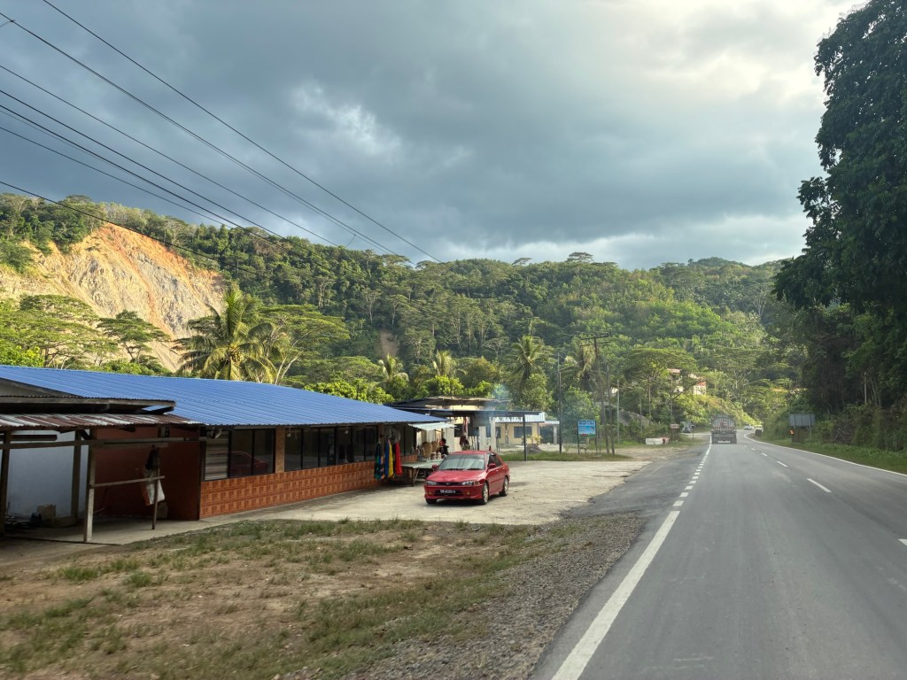 The drive for the first part is really nice, weaving through the Borneo jungle and hills. The seabreeze comes through the trees as well. This is one of the few ‘wild’ areas of Borneo left, presumably because of the hills; much of the ancient jungle has been cut down for palm oil plantations.