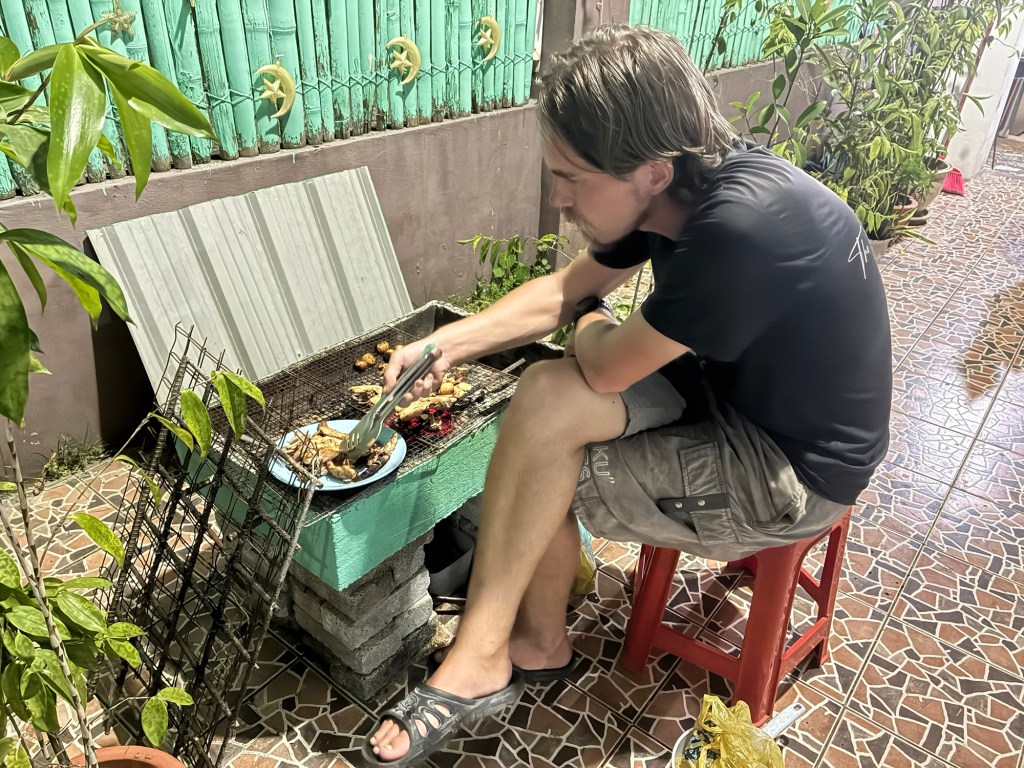 Vlad gets the bug and decides he wants to BBQ that night, since Ismail does have a charcoal BBQ pit. He takes the bike down to Kota Belud and buys things to grill and a package of charcoal, before spending 3 hours babysitting the BBQ. I’m not sure it was worth it, but I also recognize a large part of this is his pent-up lack of agency expending itself. Almost no hostel will have a BBQ pit that you can freely use. Smoke ’em if you got ’em.